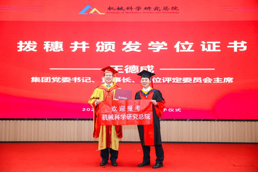 李愛國(guó)宣讀了《機(jī)械科學(xué)研究總院2025屆畢業(yè)生學(xué)位授予決定》,王德成為每位畢業(yè)生撥穗正冠并頒發(fā)學(xué)位證書。