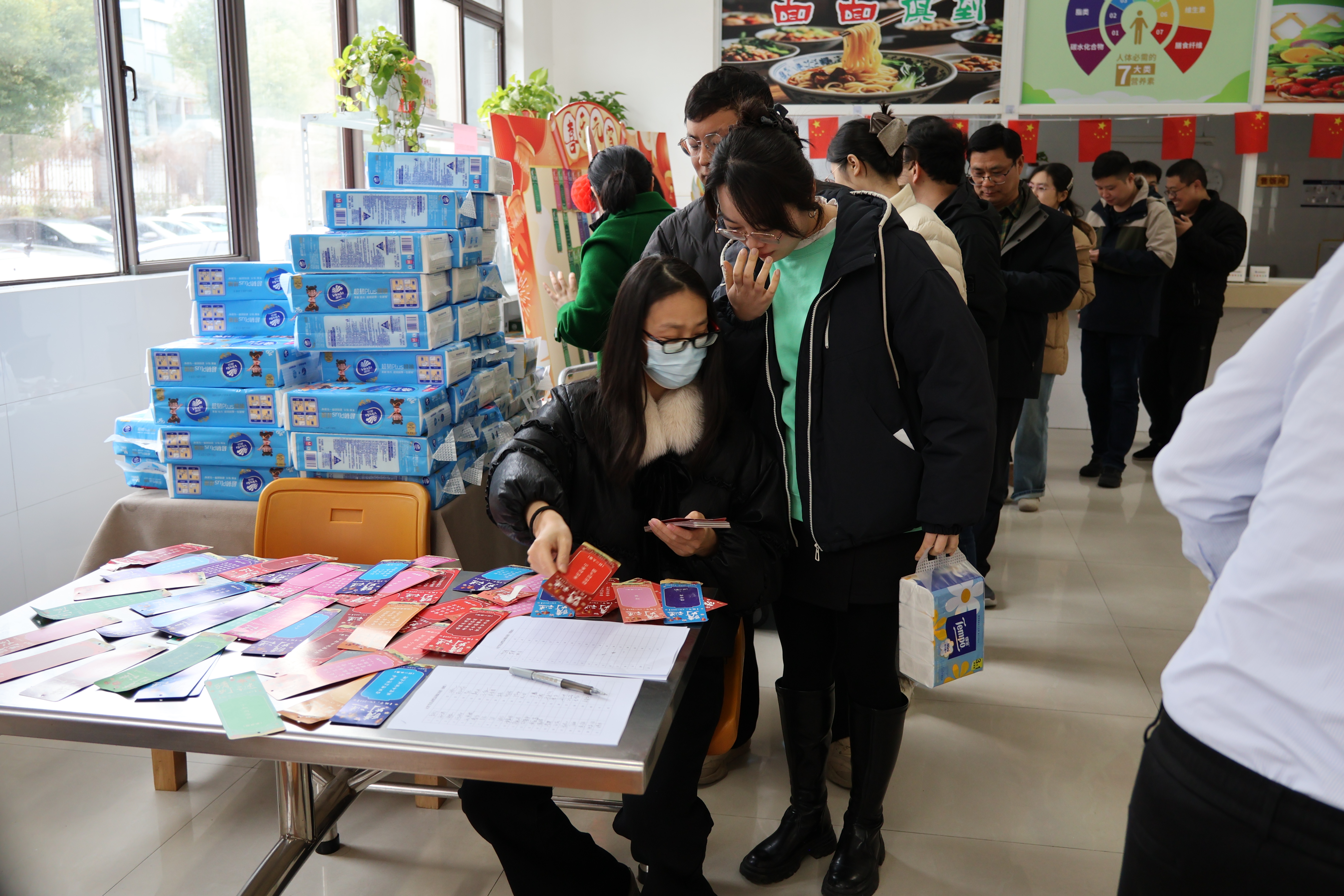 與此同時,“猜燈謎贏好禮” 區域更是熱鬧非凡。五顏六色的燈謎懸掛在食堂內,內容涵蓋傳統文化、生活常識、趣味知識等,既考驗智慧,又增添了節日的趣味性。職工們或駐足思考,或熱烈討論,猜中者喜提精美禮品,笑容洋溢在每個人臉上。