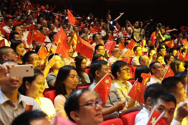 8月22日,國(guó)務(wù)院國(guó)資委黨委主辦的“放歌新時(shí)代·我和我的祖國(guó)”中央企業(yè)經(jīng)典愛(ài)國(guó)主義歌曲歌詠優(yōu)秀節(jié)目交流展演活動(dòng)在京舉行。國(guó)務(wù)院國(guó)資委黨委書記、主任郝鵬,中華全國(guó)總工會(huì)黨組書記、副主席、書記處第一書記李玉賦,副主席、書記處書記、黨組成員閻京華,中國(guó)文聯(lián)書記處書記、黨組成員董耀鵬,國(guó)資委副主任、黨委委員翁杰明、趙愛(ài)明、任洪斌等,和1000多名中央企業(yè)干部職工共同觀看展演活動(dòng)。