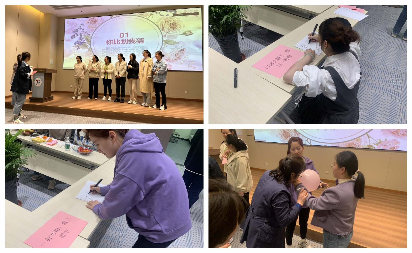 除此之外,今天的系列活動還有“吸管傳鑰匙”、“協力吹氣球”、“畫畫傳歌詞”,一院的女同胞們不僅鍛煉了“腦力”,也鍛煉了“體力”,同時進一步增進了女性之間團結互助的“合力”,大家在一片熱情洋溢的氛圍中愉悅了身心、舒緩了壓力。