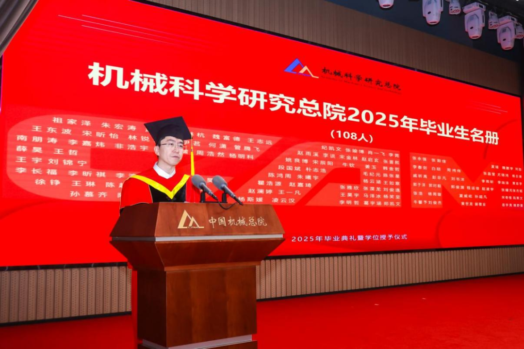李?lèi)?ài)國(guó)宣讀了《機(jī)械科學(xué)研究總院2025屆畢業(yè)生學(xué)位授予決定》,王德成為每位畢業(yè)生撥穗正冠并頒發(fā)學(xué)位證書(shū)。